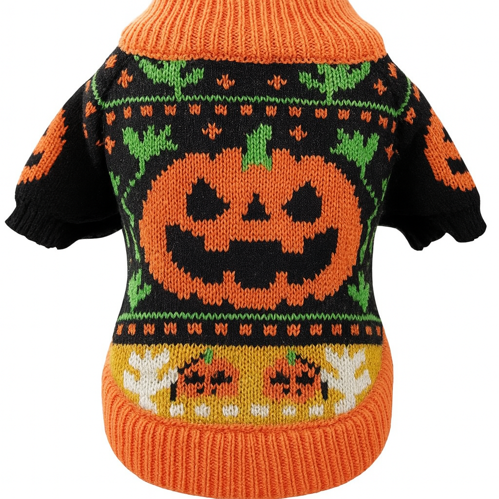 KUTKUT Halloween Small Dog Cat Sweater - Warm Acrylic Wool Knit Pet Pullover With Pumpkin Design, Soft Cozy Outfit For Maltese, ShihTzu, Pekingese etc